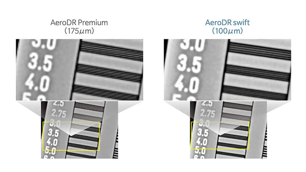 AeroDR swiftは画素サイズ100μmを実現。100μm/200μmを撮影部位に応じて使い分ける事ができます。