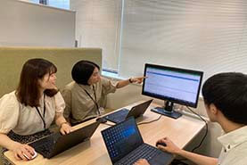 コアタイム(10:30~15:10)をはさみ、社員は自主的に出退勤時刻を選択し勤務することができます。