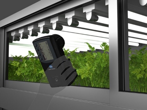 コニカミノルタが提供する分光放射照度計 CL-500Aは、植物工場での照度管理が可能。植物育成に関わる光源の照度分光波形・光合成有効光量子密度(PPFD)測定もできます。