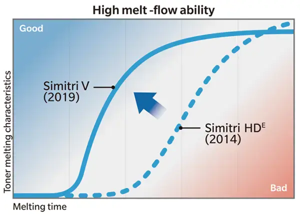 Simitri Vトナーと従来トナーの溶融特性比較