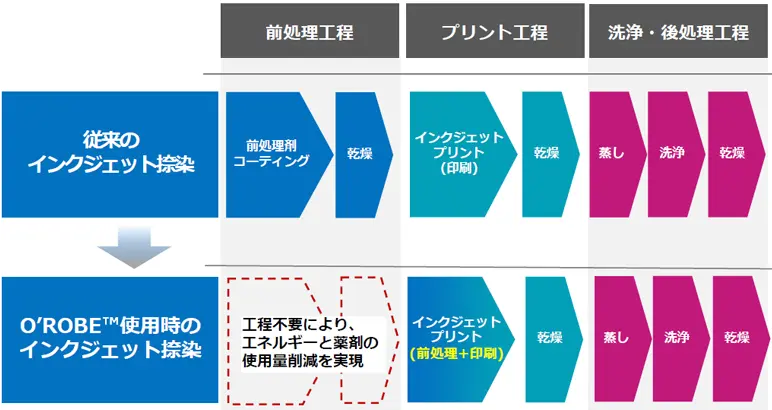 インライン前処理インク「O'ROBE(オーローブ)」使用による生産工程の変化