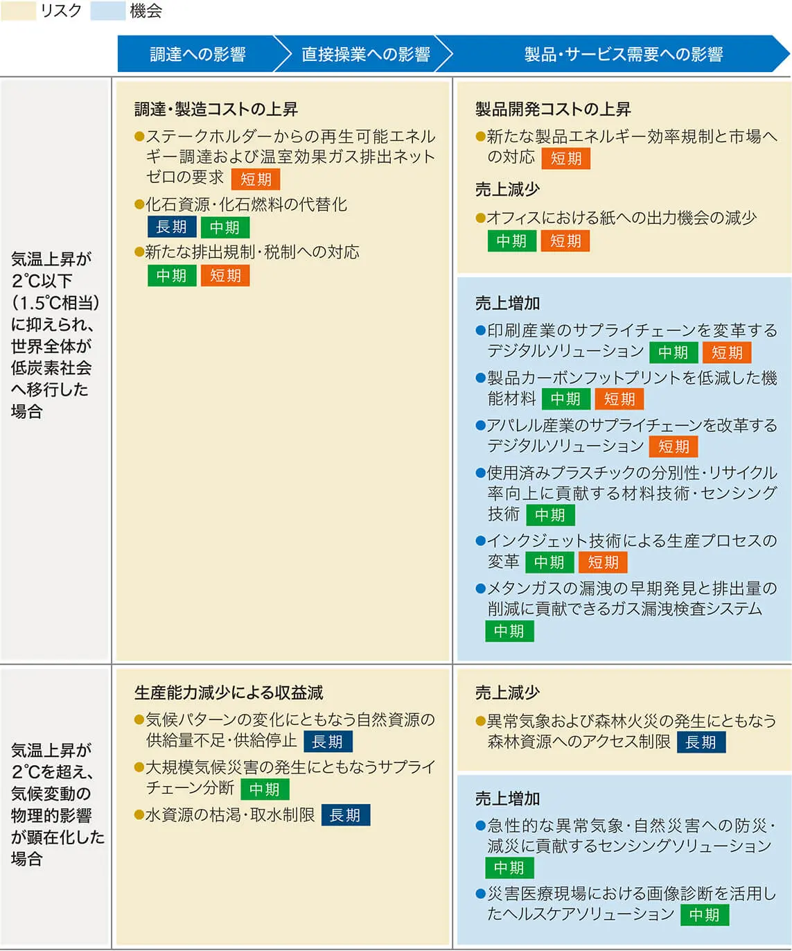 | ・大規模気候災害の発生にともなうサプライチェーン分断 | デジタルワークプレイス事業 プロフェッショナルプリント事業 |