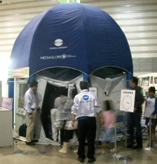 「まなびピアふくしま2008」は、"まなび愛 うつくしまから 夢発信"をテーマに、福島県郡山市の"ビッグパレットふくしま"を主会場にして開催されました。コニカミノルタは「まなびピア」へ、毎年、小型で持ち運びができるデジタルプラネタリウム「MEDIAGLOBE(メディアグローブ)」を出展しており、毎回、お子様やご家族連れなど多くのお客様からご好評をいただいております。
