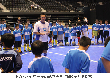 トム・バイヤー氏からは「サッカーもフットサルも個人の技術の向上は自分の練習次第なので、これからも練習を頑張って下さい」と子どもたちにエールが送られました。