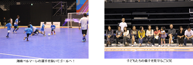 対戦相手のプロの技術に翻弄されながらも、必死に食らいついてパスを回す子どもたちの姿に、会場からは自然と子どもたちに対する声援が湧き、ゴールを決めたチームには、一際大きな拍手が送られました。