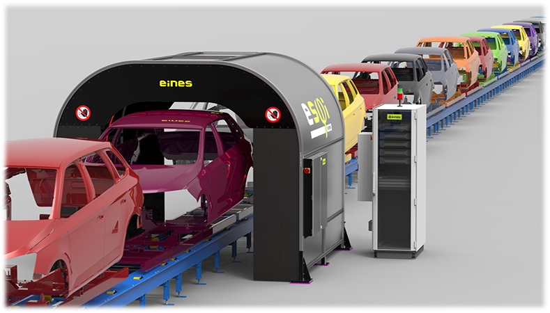 トンネル型自動検査技術によって、塗装欠陥やボディ建付検査を自動化。AIデータ解析により欠陥の詳細分類・分析や自動修正も可能に。