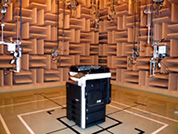 コニカミノルタでは、ISO/IEC 17025※の認証を得た世界トップレベルの音響特性を備えた「音響試験棟」を活用し、ドイツの環境ラベル「ブルーエンジェルマーク」の申請に必要な音響測定を自社内で実施しています。