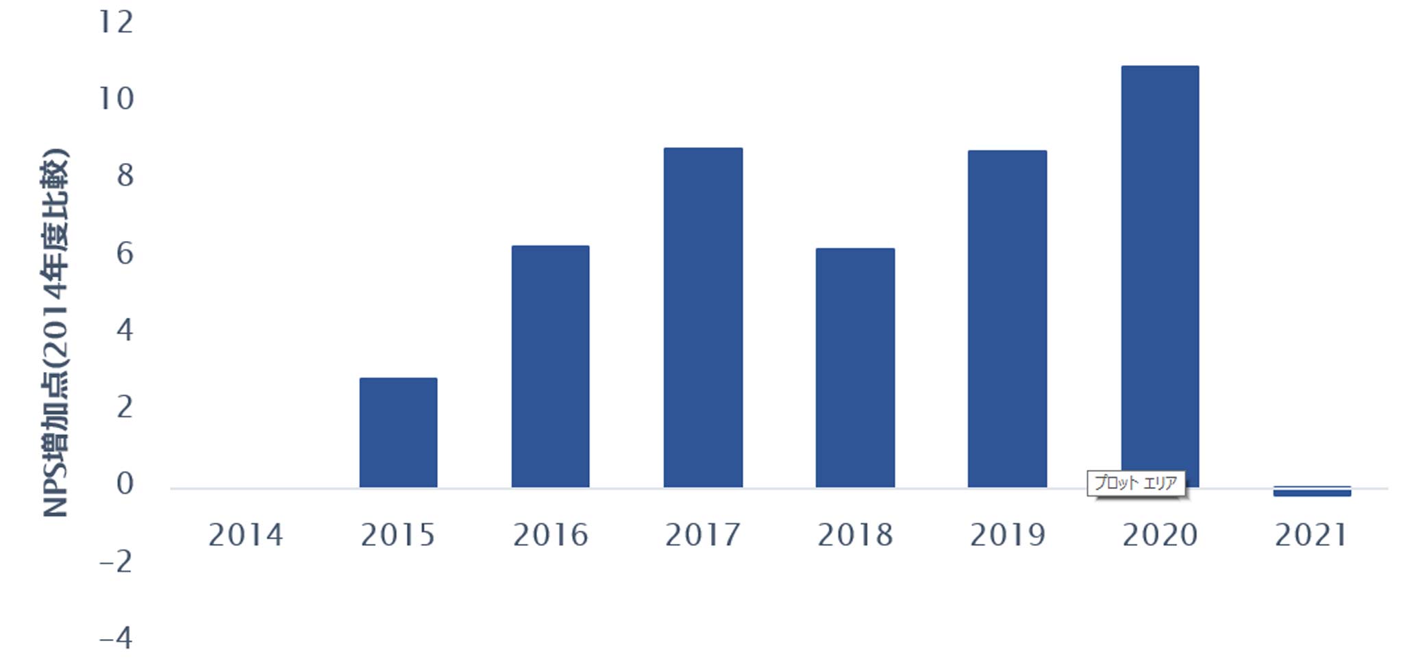 ※ Net Promoter Score®(NPS®):企業や製品、サービスを他者に推奨する割合を測定した指標。Net Promoter Score®およびNPS®は、ベイン・アンド・カンパニー、フレッド・ライクヘルド、サトメトリックス・システムズの登録商標です。