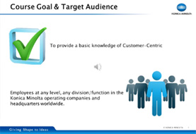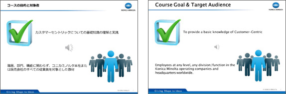 コニカミノルタでは、世界各地の販売会社のCR推進担当者のスキルアップを目的に、独自のCR活動を体系化した教育・認定プログラム「CRマスタープログラム」を展開しています。このプログラムに参加している販売会社から、CR推進担当者だけではなく、全従業員向けの教育プログラム開設の強い要望があり、2017年度に、カスタマーセントリックな考え方・行動指針を現場メンバーに示すe-Learningプログラムである「CRホワイトベルト」を設置しました。わかりやすい教材を英語版と日本語版で作成して、各販売会社に共有し、すでに教育を開始した販売会社から高評価を得ています。CR推進担当者向けに、2020年度にコミュニティサイトをオープン、2023年度からはコミュニティコールを開始、各国のCR活動事例の共有を行い、グローバルにCR活動の品質向上を目指しています