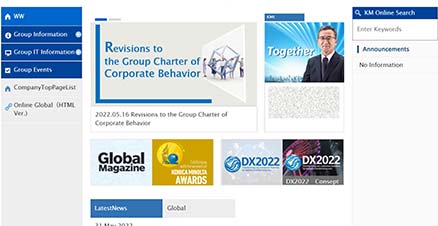 経営層と社員の対話からコニカミノルタの成長をともに考え実践につなげていくために、双方向コミュニケーションを重視しています。四半期ごとに開催している社内向け決算説明会「CEO LIVE!」では、全社員に向けて、社長や役員が業績や方針を直接説明します。企画・資料作成は若手社員が担い、一般社員にもわかりやすい内容にしています。Q&Aコーナーでは、毎回リアルタイムで多くの質問が寄せられ、関心の高い順に社長や役員がその場で回答しています。開催後には社内ポータルサイトに動画を掲載して広く展開しているほか、アンケートを実施して社員の声を次回以降の企画や運営に反映し、内容の向上に努めています。さらに、CEO LIVE!の時間内に回答できなかった質問の回答も、後日社内ポータルサイトに掲載しています。回答作成には生成AIも活用し、効率化を進めています。