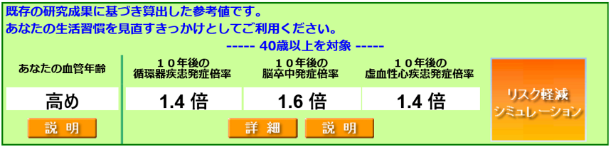 また、従業員の健康増進を支援するためのウェブサイトを通して、直近の健康診断結果から、同年齢平均と比較した10年後の循環器系疾患、脳卒中、虚血性心疾患の発症倍率を個人ごとに提示することで、生活習慣の改善を促しています。この仕組みは従業員に加え、健康保険制度の扶養家族にあたる配偶者も利用できます。
