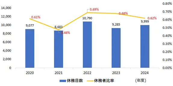 | 休務者※2の平均休務日数削減率※3 | - | 2%増 | 12%減 | 9%減 | 17%減 |