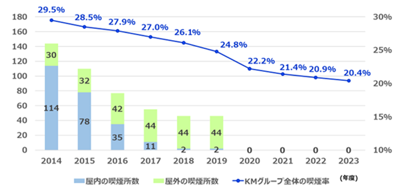 これらの対策が奏功し、喫煙率は年々低下しています。データの詳細はESGデータ内の社会データ(Excel)をご参照ください。