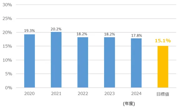 | 健康問題による労働機能障害が中程度以上と判断された従業員の割合 | 18.2% | 18.2% | 17.8% | 16.1% | 15.1% |