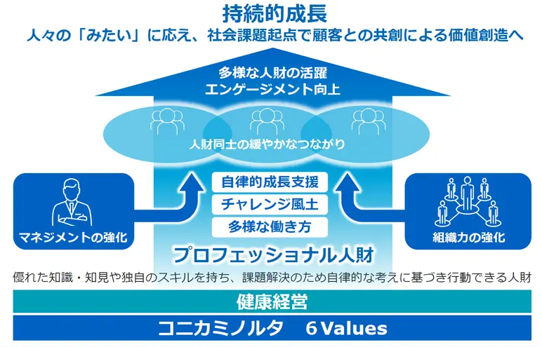コニカミノルタでは、会社の持続的成長を担うプロフェッショナル人財を最大限に育成し活躍させていくためにさまざまな取り組みを進めています。その効果を測る指標として「Your Voice」と名付けたグローバルサーベイを毎年実施し、従業員エンゲージメントをスコア化しており、以下の目標を掲げています。