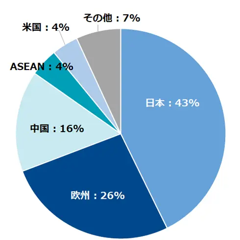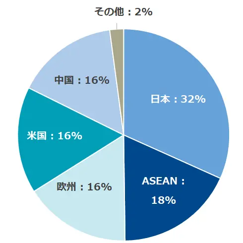 その地域比率としては日本32%、ASEAN18%、欧州16%、米国16%、中国16%、その他地域2%となっております。
