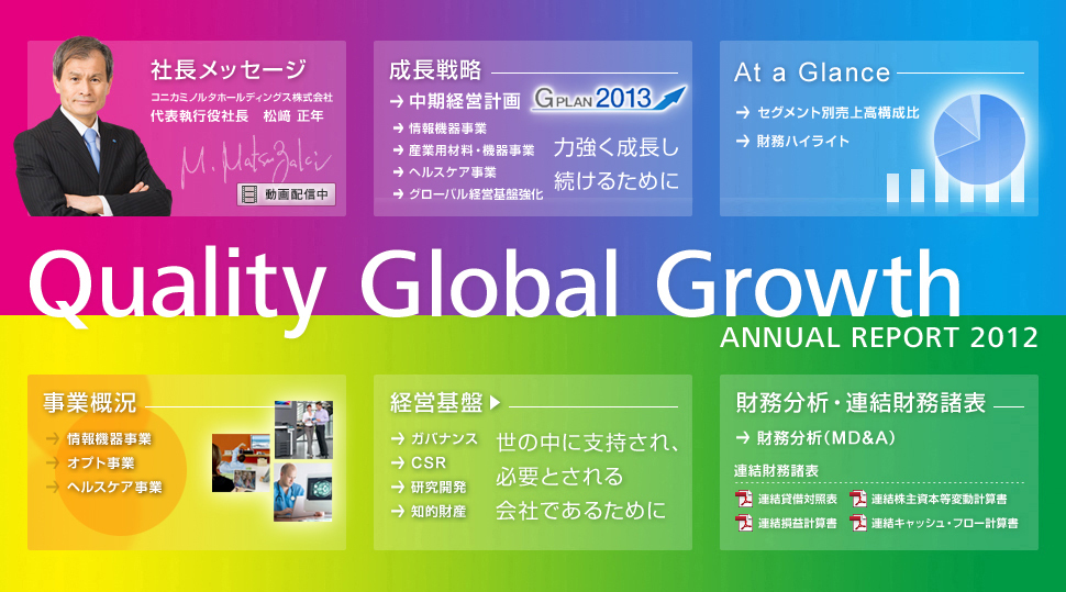 会社情報 経営理念、事業領域、会社概要や国内グループ会社等の情報はこちらから。 企業情報 株式情報 現在の株価や、総株式発行数、株主比率などの株式に関する情報はこちらから。 株式の状況 株価情報 IR資料室 有価証券報告書、株主通信、コーポレートガバナンス報告書等のIRに関する資料を掲載しています。 IR資料室を見る 要約PDF版アニュアルレポート 本レポートはオンライン版にて発行しております。出力が必要な場合は、要約PDF版をダウンロードの上、ご利用ください。 PDFファイルをご覧頂くには、Adobe Reader(R)が必要になります。ダウンロードは左のアイコンから。