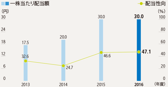 なお、当期の年間配当については、厳しい事業環境ではありますが、前期と同じ一株当たり30円とさせていただきました。当社では、配当への基本的な考え方として、配当性向よりも絶対額を重視しています。今後も、持続的な成長を実現するための投資を進めるとともに、しっかりと業績を上げることで、創出された利益・キャッシュを積極的に還元し、株主の皆様の期待に応えていきます。