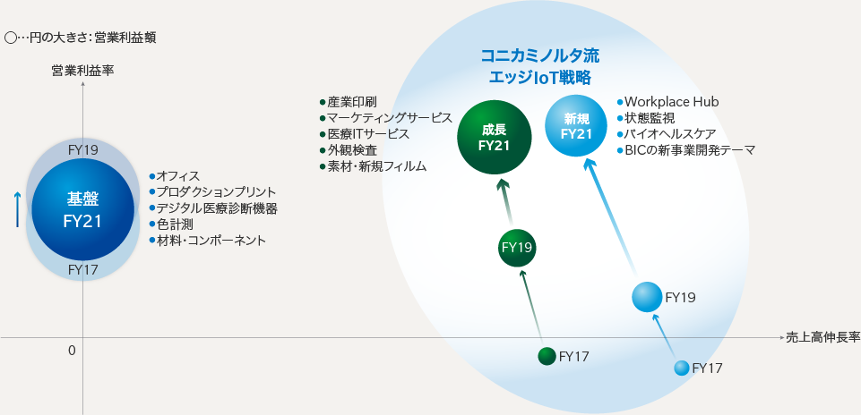 「SHINKA 2019」による高収益企業への変革を実現していくために、グループ全体の事業領域を「基盤事業」「成長事業」「新規事業」の3つに分類し、今後は各事業における利益責任を明確化しながら、収益構造の転換を進めていきます。