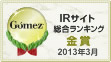 「Gomez IRサイトランキング2013」で金賞を獲得