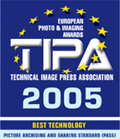 デジタル写真およびビデオの保存を目的としたストレージ規格「PASS」が欧州の権威ある賞「TIPA AWARDS 2005」の『Best Technology in Europe 2005』を受賞