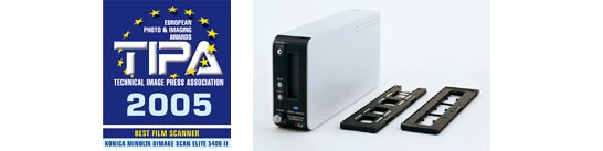 コニカミノルタフォトイメージング株式会社(社長 宮地 剛、以下コニカミノルタ)は、高画質と高い操作性を実現した35mmフィルム専用スキャナ『コニカミノルタ DiMAGE Scan Elite (ディマージュ スキャン エリート)5400 II 』が、欧州のカメラ・ビデオ専門誌で構成される「TIPA」(TECHNICAL IMAGE PRESS ASSOCIATION)が選ぶ欧州を代表する権威ある賞「TIPA Awards 2005」の“Best Film Scanner in Europe 2005”を受賞したことをお知らせします。