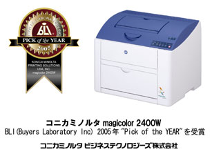 コニカミノルタビジネステクノロジーズ株式会社(社長:太田義勝)は、カラーレーザプリンタ「magicolor 2400W」と「magicolor 2430DL」が、米国BLI*より2005年 “Pick of the YEAR”を受賞したことをお知らせいたします。