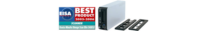 コニカミノルタフォトイメージング株式会社(社長 宮地 剛、以下コニカミノルタ)は、35mmフィルム専用スキャナ『コニカミノルタ DiMAGE Scan Elite (ディマージュ スキャン エリート) 5400 II』(以下 『DiMAGE Scan Elite 5400 II』)が、欧州の権威ある映像賞「EISA Photo Awards」※1において “European Scanner of the year 2005-2006”を受賞したことをお知らせします。