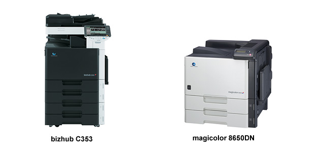 一方、「magicolor 8650DN」は、高性能CPU搭載ならびにGigabit Ethernet*3標準装備による高速データ処理、カラー/モノクロともに毎分35枚(A4)の高速出力と、重合法トナーおよび独自の画像処理技術による高画質プリント、更には豊富なフィニッシング機能を高いレベルで統合した、PS(ポストスクリプト) 3互換の高性能A3カラーレーザプリンタです。