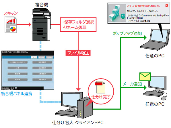 - スキャン:複合機のスキャン操作による仕分けが可能です。