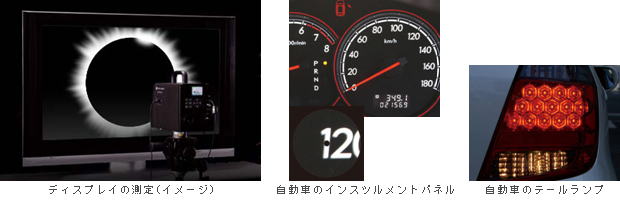 本体の測定角切替機能により、用途に合わせて1度、0.2度、0.1度の測定角が選択できます。標準で最小測定径φ0.5mmを実現、クローズアップレンズ(オプション)を用いれば、さらにφ0.1mmの測定も可能です。一般的なディスプレイだけでなく、自動車や航空機のインスツルメントパネル、カーオーディオのインジケータなどの微小領域についても、輝度、色度を高速かつ安定して測定できます。