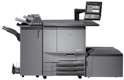 また現行主力機種「bizhub PRO C6501」と基本機能の共通化を図り、生産性、画像安定性、信頼性などはそのまま継承しています。毎分65枚(A4ヨコ)と両面生産性100%の高生産性を確保し、更に最大300g/m2の厚紙やコート紙、用紙サイズは郵便ハガキ~A3ノビ(330mm × 487mm)と優れた用紙対応力を持っています。加えてインラインでのステープル処理やパンチ穴処理、三つ折り出力、中綴じ製本、くるみ製本などを可能とする後工程用のオプション機器もラインナップされております。
