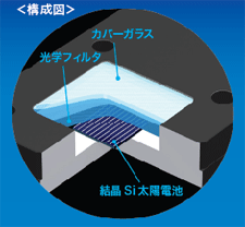 今回発売する擬似基準太陽電池セル「Reference PV Cell AK-100/110」は、独立行政法人産業技術総合研究所※4(太陽光発電研究センター 猪狩主任研究員)とコニカミノルタとの共同研究により、多重反射、耐光性能を向上させた擬似基準太陽電池セルです。アモルファスシリコンとマイクロ(微結晶)シリコンのタンデム型太陽電池用の擬似基準セルで、安定した結晶シリコン系太陽電池セルの上に独自設計の光学フィルタを装着し、精度と安定性を従来の擬似基準太陽電池セルから格段に高めています。