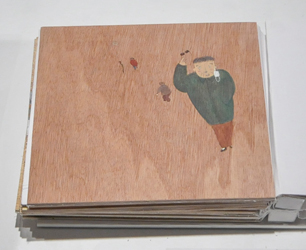 建築物の下地素材として使用されるベニヤ板を「借景」とした絵本は、オリジナリティに溢れ独特な世界観を醸し出しています。ベニヤ板の複雑で豊かな木目を活かして描きあげた愛らしいクラゲや景色の繊細な筆致にも味わいを感じます。我々が普段見過ごしている素材を見事にアートに昇華させ、その面白みを気づかせてくれる作品でもあります。