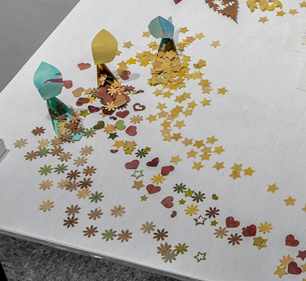 紅葉した落ち葉を型で抜いた紙吹雪は、アイデア、素材、用途が全てシンプルで、”落ち葉が土に還るまで“をコンセプトにした作品です。誰もが理屈抜きで手に取りたくなる様な愛らしい紙吹雪の形態は、エコと世の中をやわらかく結びつけるデザインとして優れていると評価しました。花や星、県の形のバリエーションがあり、今後、地域のイベントなどで使用できる可能性も秘めた、自然素材の魅力が溢れる作品です。