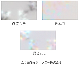 「CA-Mura」で表示される「ムラ指数」には、「輝度ムラ値」「色ムラ値」「混合ムラ値」の3種類があります。「混合ムラ値」は輝度ムラと色ムラを混合させた値で、「輝度ムラ値」「色ムラ値」それぞれ単独では評価しきれなかった、より人間の感性に近い評価を可能にします。