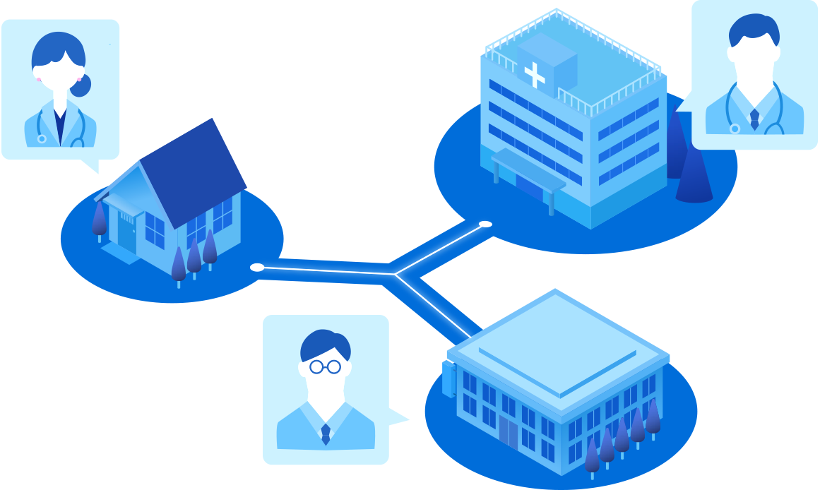 医療機関ICTサービス「infomity」は、医師の診断を助ける画像処理や医療情報の提供などに加え、医療機関同士のデータ共有や遠隔読影のサービスを提供しています。これまで医療機関同士でのデータ共有はCDなどのメディアを運搬して行っていましたが、「infomity」はクラウドによって安全かつ迅速な情報共有を実現。複数の医療機関を受診する患者様の情報共有や、救急医療時の情報共有を効率化することで、遠隔医療の推進にも貢献しています。