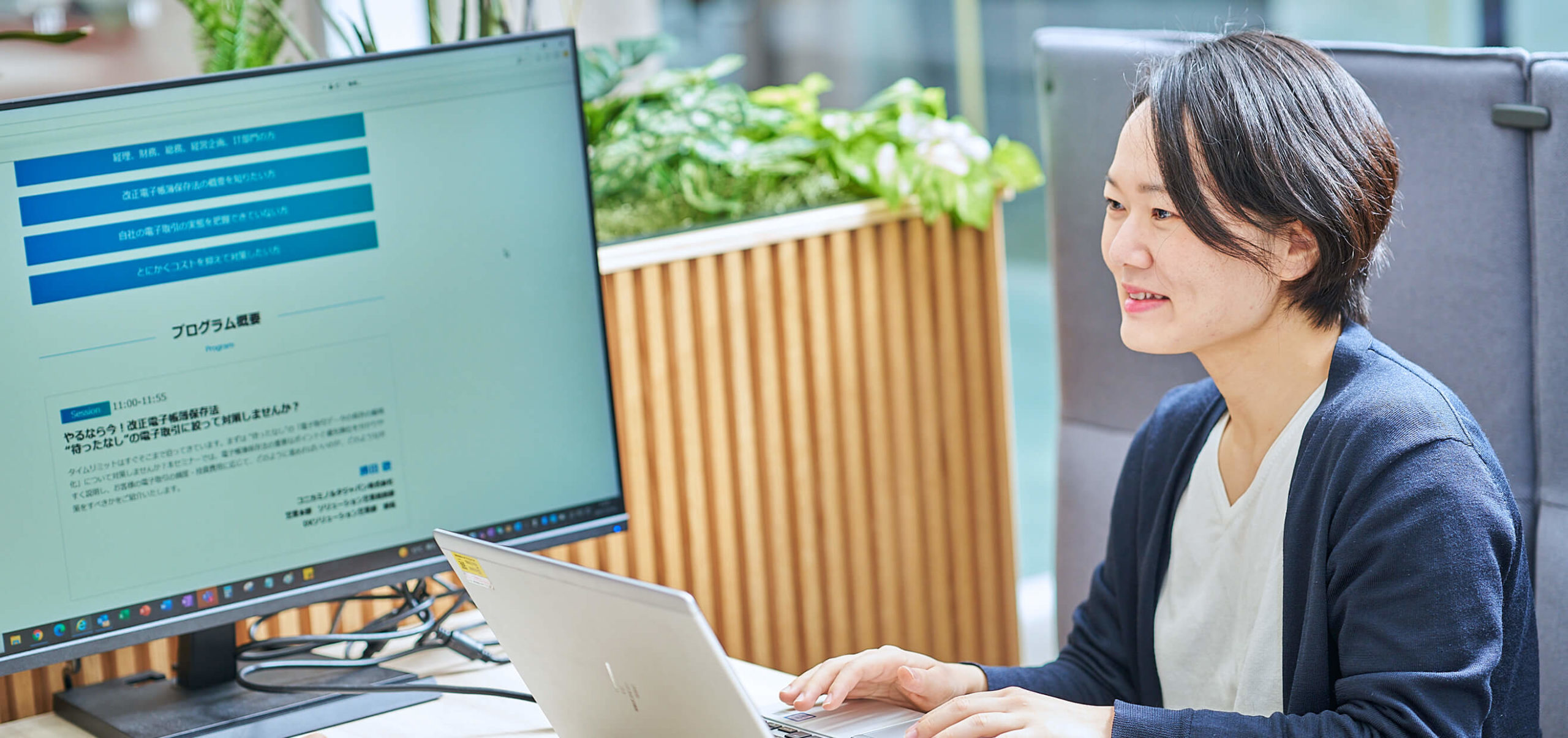 上記のようにどちらかと言えば営業寄りのコーポレート職であるため、全国の営業さんが売上を上げやすくなるようにチラシや支援ツールの作成も行っています。最近では支援ツールの一環としてYouTubeにいろいろな解説動画を上げる活動も始めました。また、自部門でオンラインセミナーの企画・開催も行っています。オンラインセミナーは企画部門から全国のお客様に直接思いを伝えることができ、かつ関心を持ってくださったお客様の情報を営業さんに伝え、営業さんと連携してすぐに提案活動に繋げることが出来るので、これもまた良いツールだと思っています。