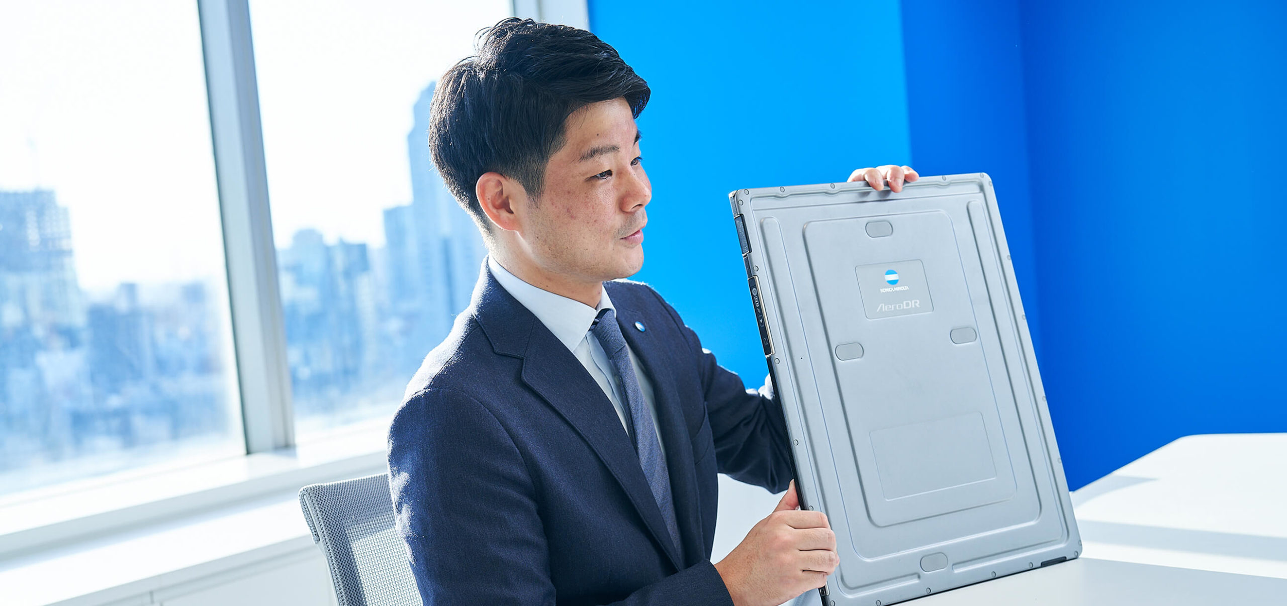 私は大学で医用工学を専門にして勉強していました。その知識を活かして、人の役に立つ仕事に就きたいと考え医療機器業界を志望しました。私が入社を決めたのは、コニカミノルタの多様な医療機器の開発、研究の基、常に最先端の医療提供に貢献している実績と高い製品シェア率(特にレントゲン)です。実際入社してみると、多くの製品の知識や技術を身に着ける事に必死で、初めの単独作業では失敗する事も沢山ありました。しかし、今では幅広い経験と知識を活かして、様々な商品の提案や相談に乗れるようになり、技術の先にあるお客様の笑顔を見れる機会が多く、やりがいを感じています。