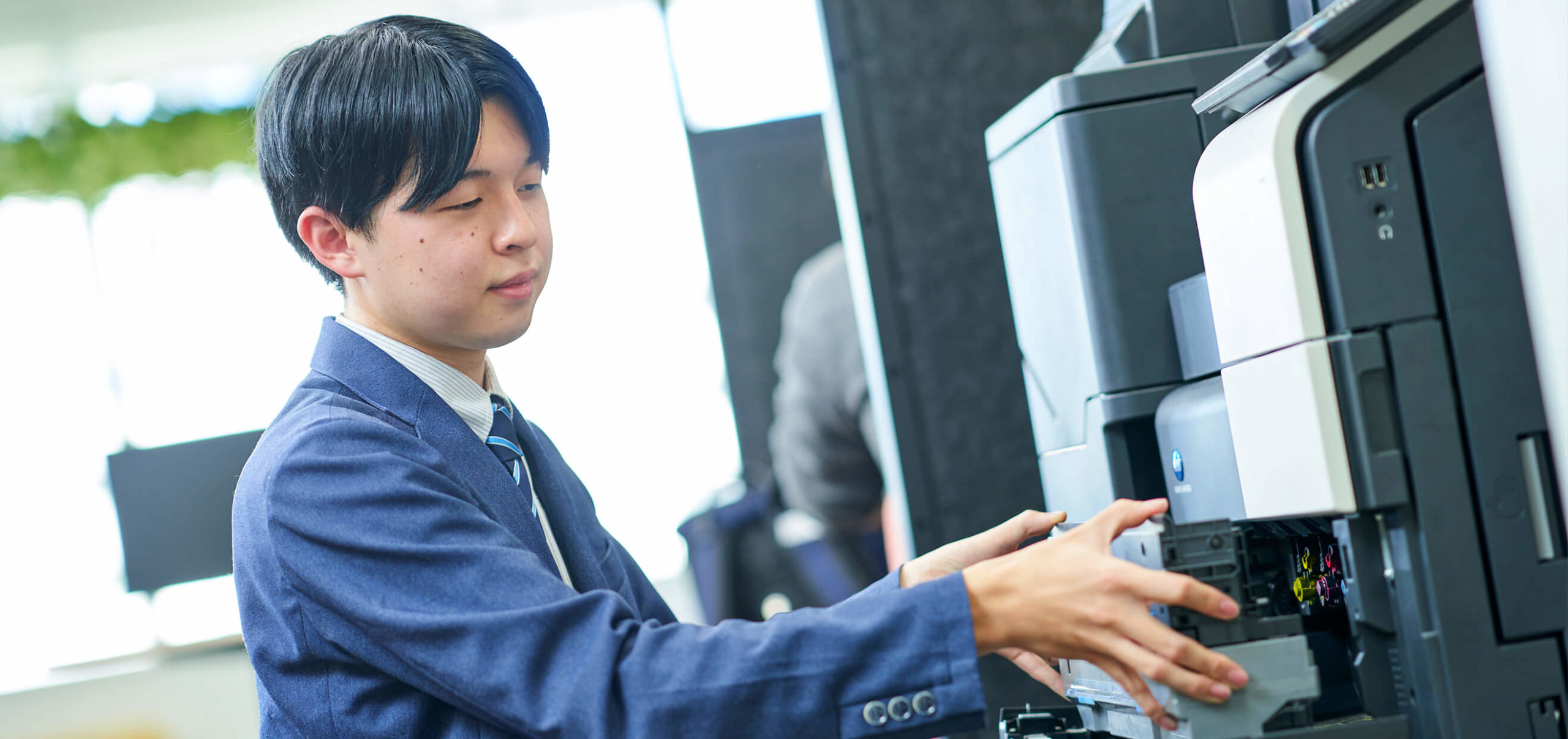 CEは、通常の複合機の保守に加え、印刷会社で使用するようなプロフェッショナル機のメンテナンスを行なう部隊やネットワークが絡んでいる修理を得意とする部隊など、様々な選択肢が用意されています。そのため、現時点では明確に目指すキャリアを定めてはいません。様々な部隊の先輩方に同行させていただきながら、自分がどの分野に魅力を感じるのかを見極めていきたいと思います。
