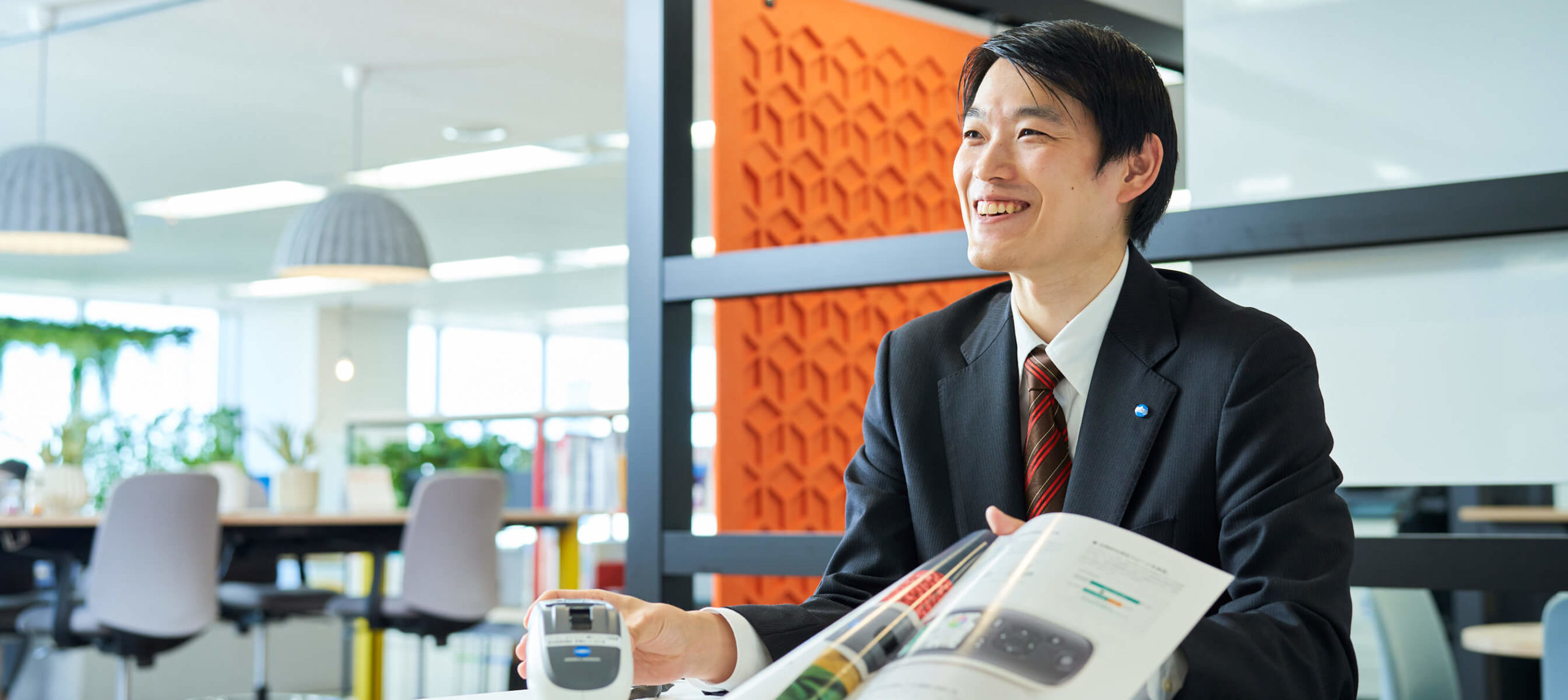 中途入社で現在4年目です。コニカミノルタジャパンは3社目で、前職、前々職では主に工場で稼働する機械を扱う営業に従事しておりました。現在はセンシング事業部に在籍し、神奈川県西部、東京都(23区外)の営業を担当しております。