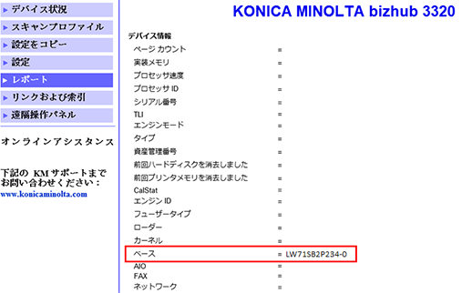 bizhub 3320用 ファームウェア バージョンLW71SB2P234-0