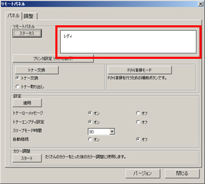 リモートパネル(Remote Panel Utility)のステータスが「レディ」になっていることを確認してください。