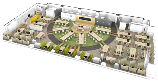 全体が見渡せるオープンなレイアウト、スペースを有効活用した社員の「働き方改革」を実践するオフィス!