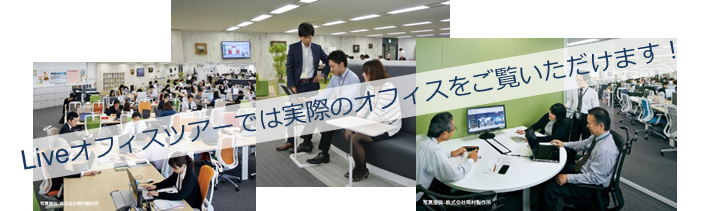 | 15:45~17:00 | Liveオフィスツアーのご説明(5分) Liveオフィスツアー&個別相談 |