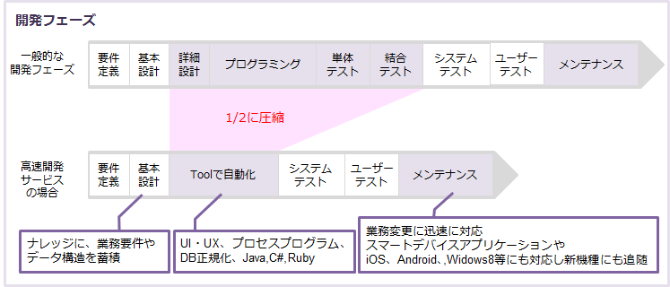 高速開発サービス「サステナ™」の特長は以下のとおりです。