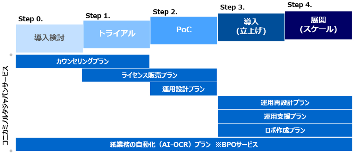 導入前のカウンセリングから導入後の展開に至るまで、顧客の検討段階に応じたプランを用意しています。