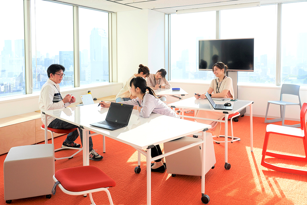 オフィスの中にも多様な場所を用意することで、新しいアイデアやクリエイティビティーが醸成されると考えています。リラックスやリフレッシュをしながらのコワークや、チームの結束力を作るグループワークなど、様々な刺激を与える環境が用意されており、創造性を高める働き方を実現していきます。