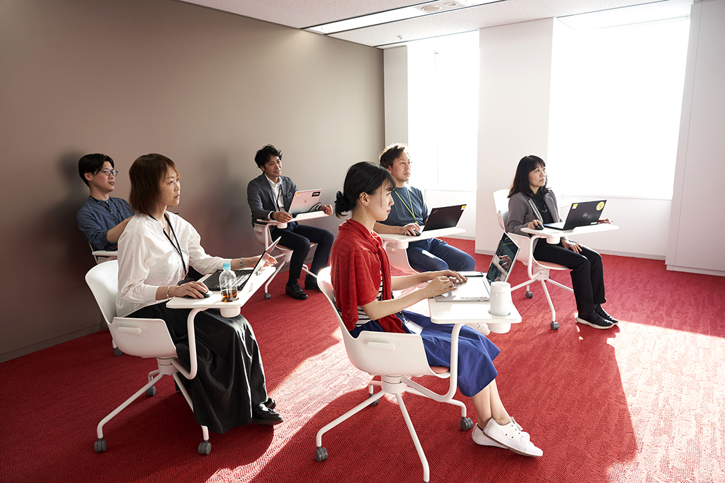 例えば、High Focusエリアでは、集中しやすい環境とは何かを考え、照明、配色、音を考慮した空間になっています。温かみのある照明と異なるアースカラーの家具、周囲の会話や音に配慮したサウンドマスキングの導入により、集中力にどのような差がでるのかを検証していきます。また、High Collaborationエリアでは、ミーティングの内容に合わせて空間や家具、ツールを自由に変えられるアジャイルなレイアウトを実現できます。1年ごとに家具を入れ替えられるサブスクリクションを採用することで、コラボレーション創出に適したミーティングのレイアウトや家具、ツールを検証し、その時に求められる最適なオフィスへと進化し続けます。
