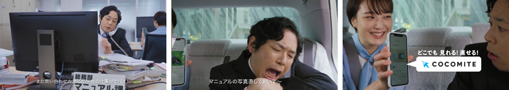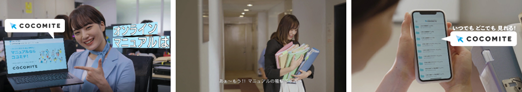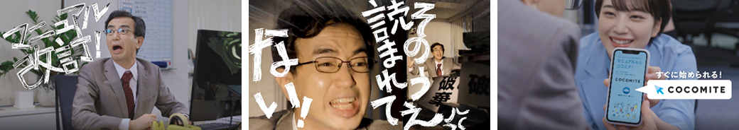 「COCOMITE」の無償提供を開始するにあたり、新しい WebCM を作成いたしました。サービス概要を分かりやすく表現するため、マニュアル閲覧者・マニュアル作成者・管理職、それぞれの目線を意識した内容となっています。是非ご覧ください。